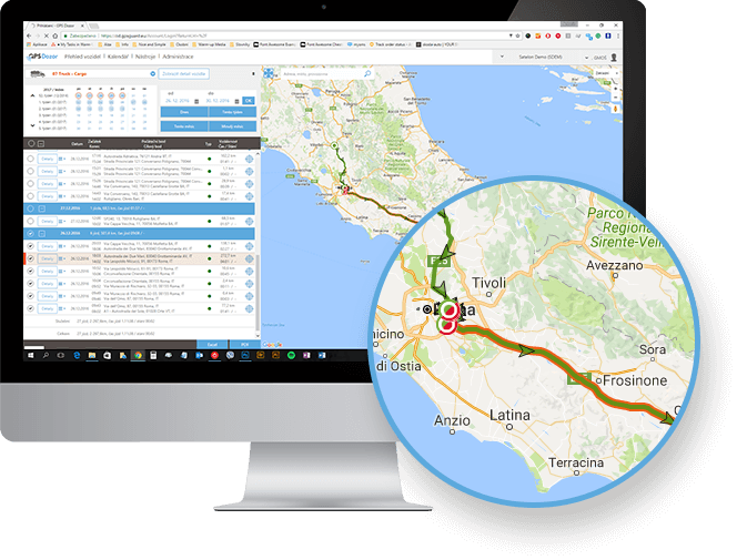 Kliknite na vybraný záznam v kalendári a zobrazia sa vám detaily danej cesty. Alebo si vyberte konkrétne vozidlo za okamih uvidíte jednotlivé dni alebo časy, kedy bolo v pohybe.